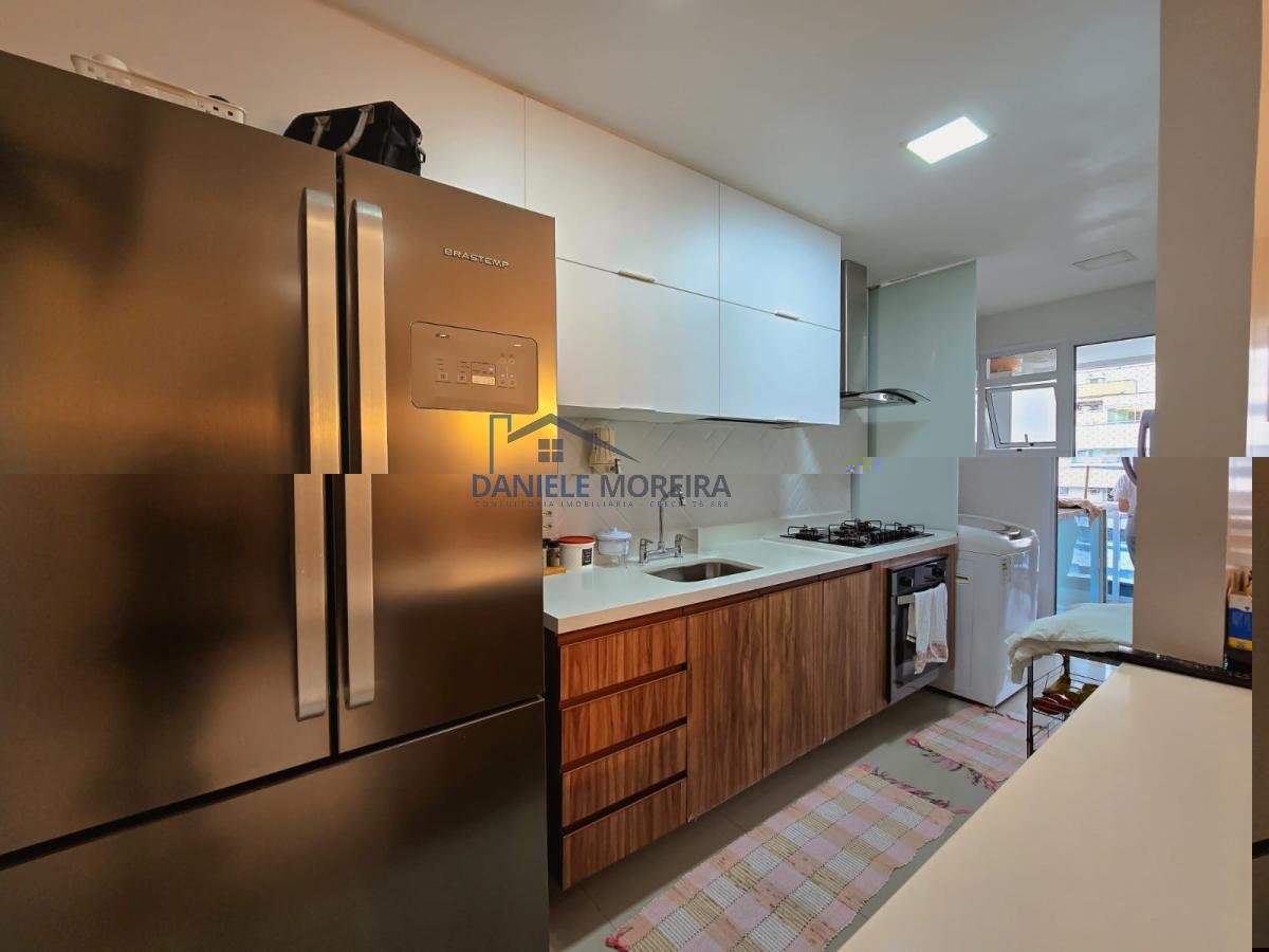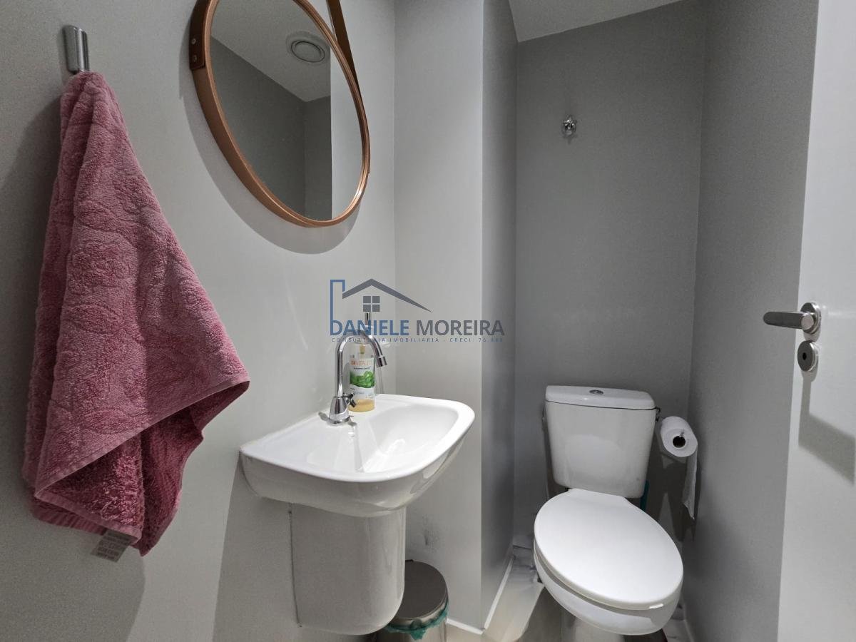 1° Pav. Sala ampla em dois ambientes com cozinha integrada, área de serviço, varanda, lavabo, banheiro social e dois quartos, sendo uma suíte com varanda