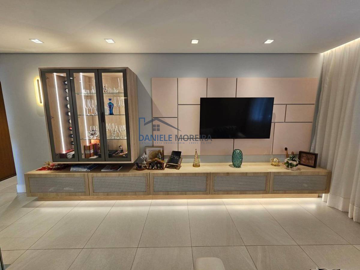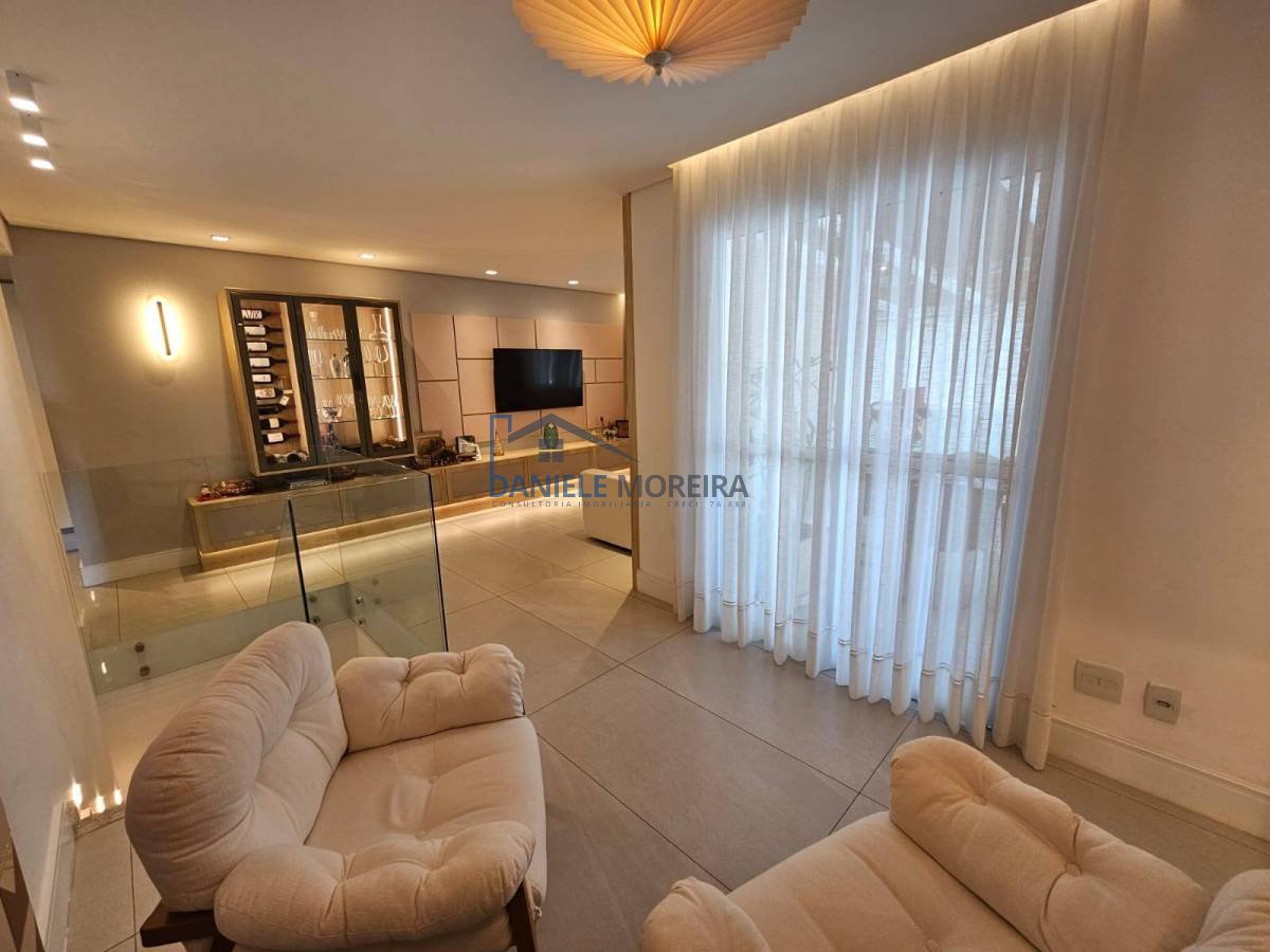 Sala em dois ambientes, cozinha integrada com área de serviço, lavabo, amplo terraço com espaço gourmet em dois ambientes, coberto e piscina com cascata